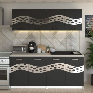 Bucătăria ARMONIA cu accente gold este alegerea perfectă pentru un spațiu modern și elegant, combinând designul minimalist cu detalii rafinate și funcționalitate optimă pentru utilizarea zilnică.