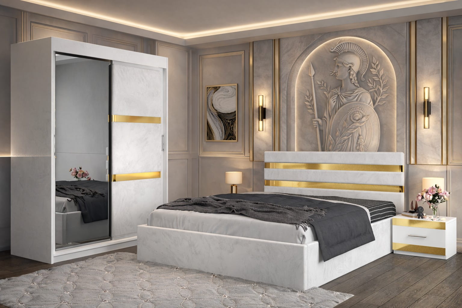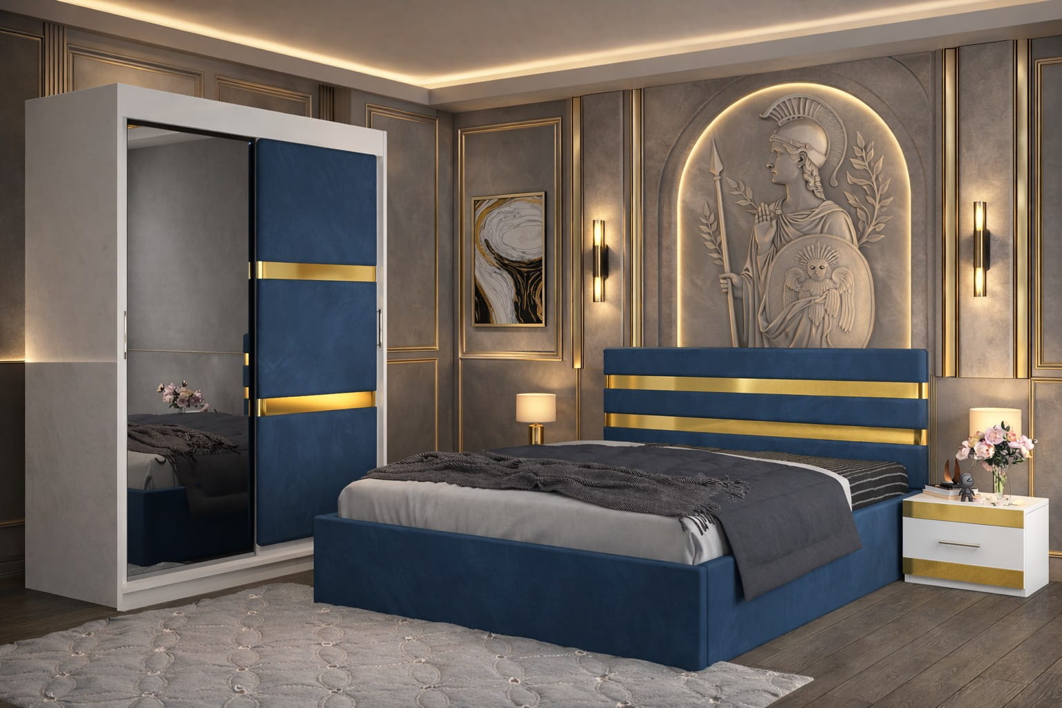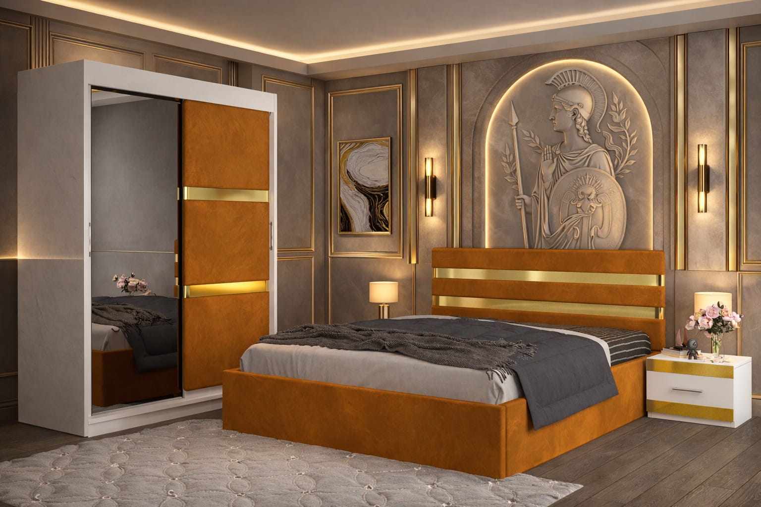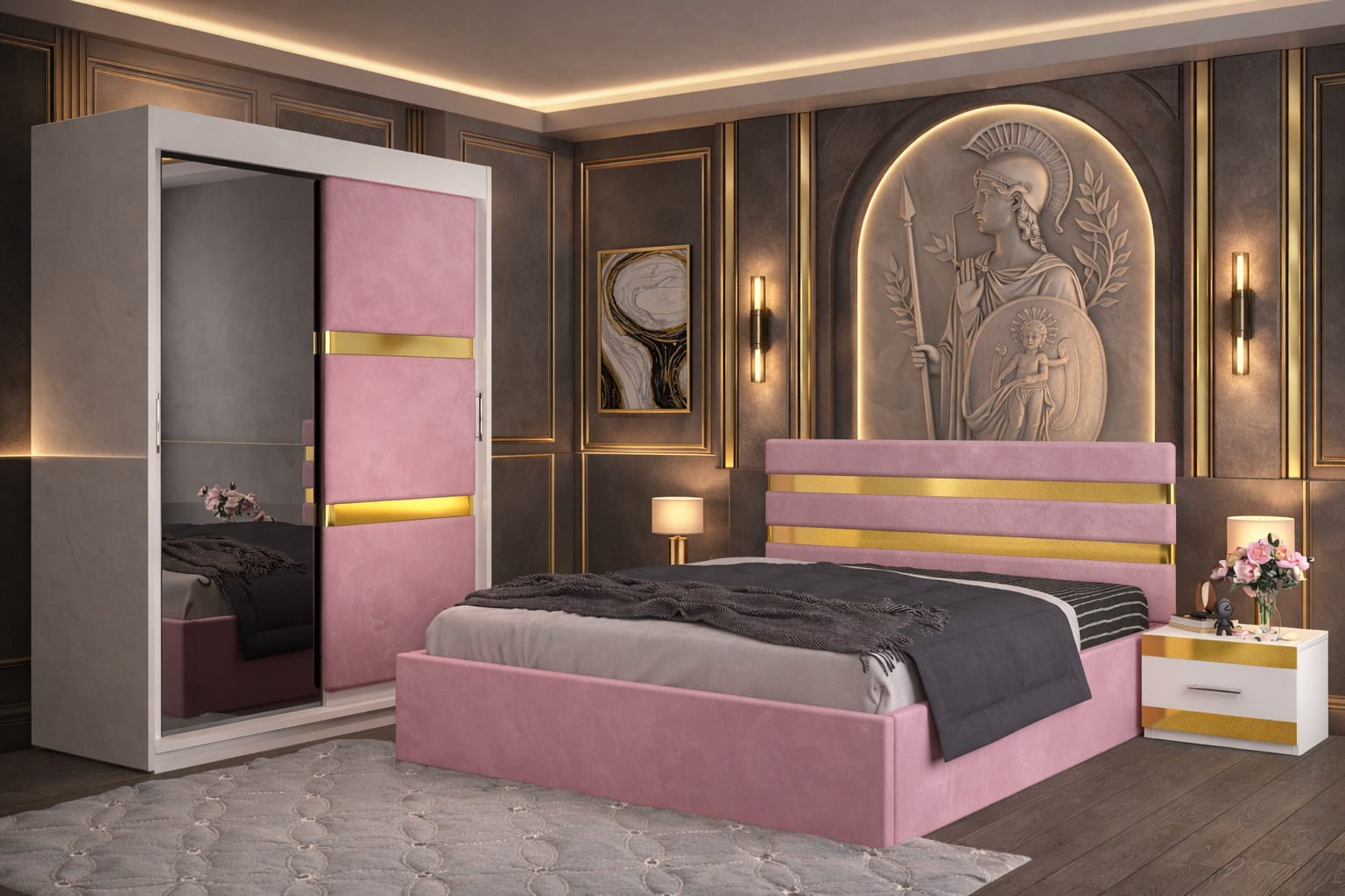 Dormitor ATENA Cu Dressing Tapitat