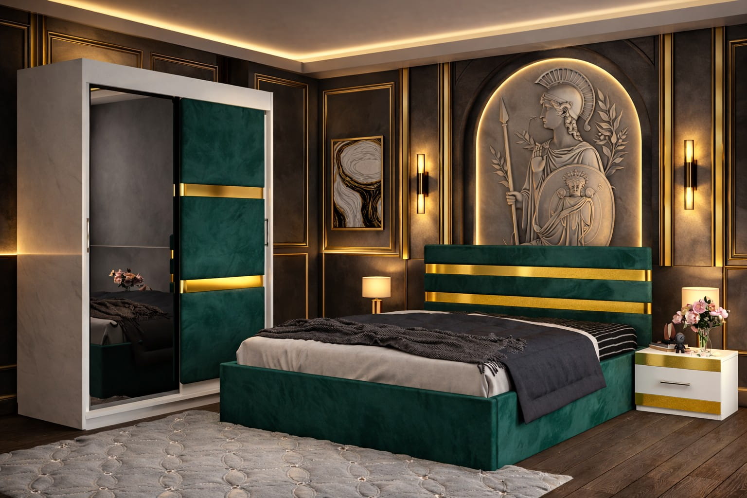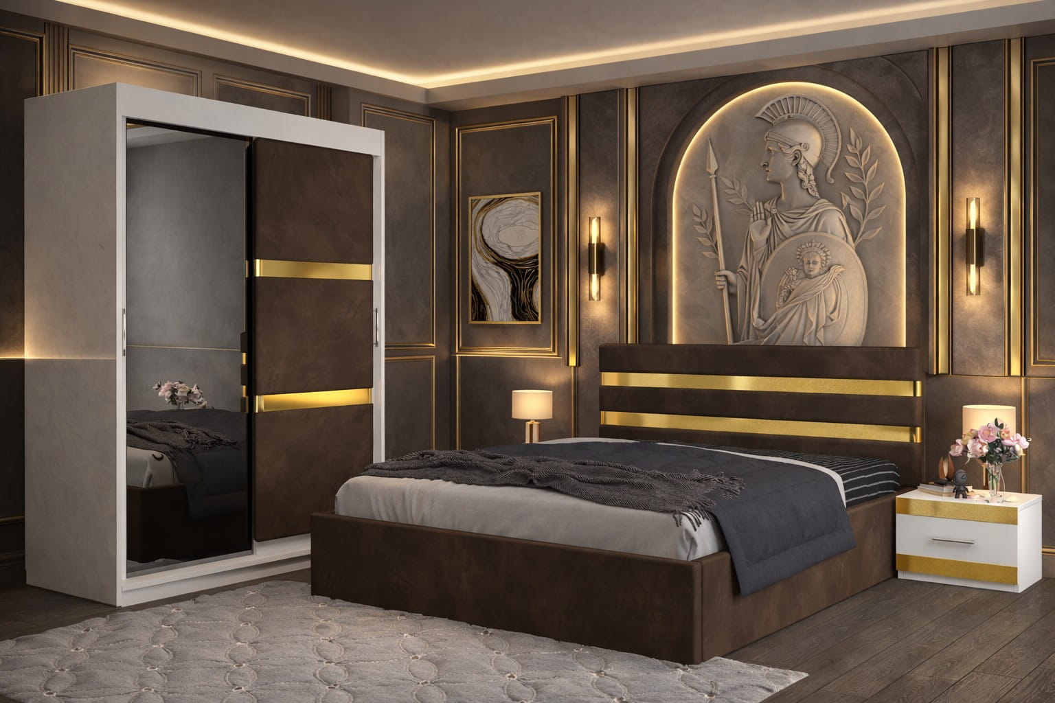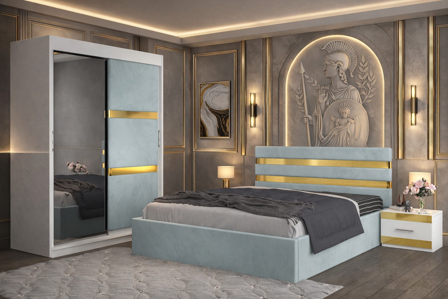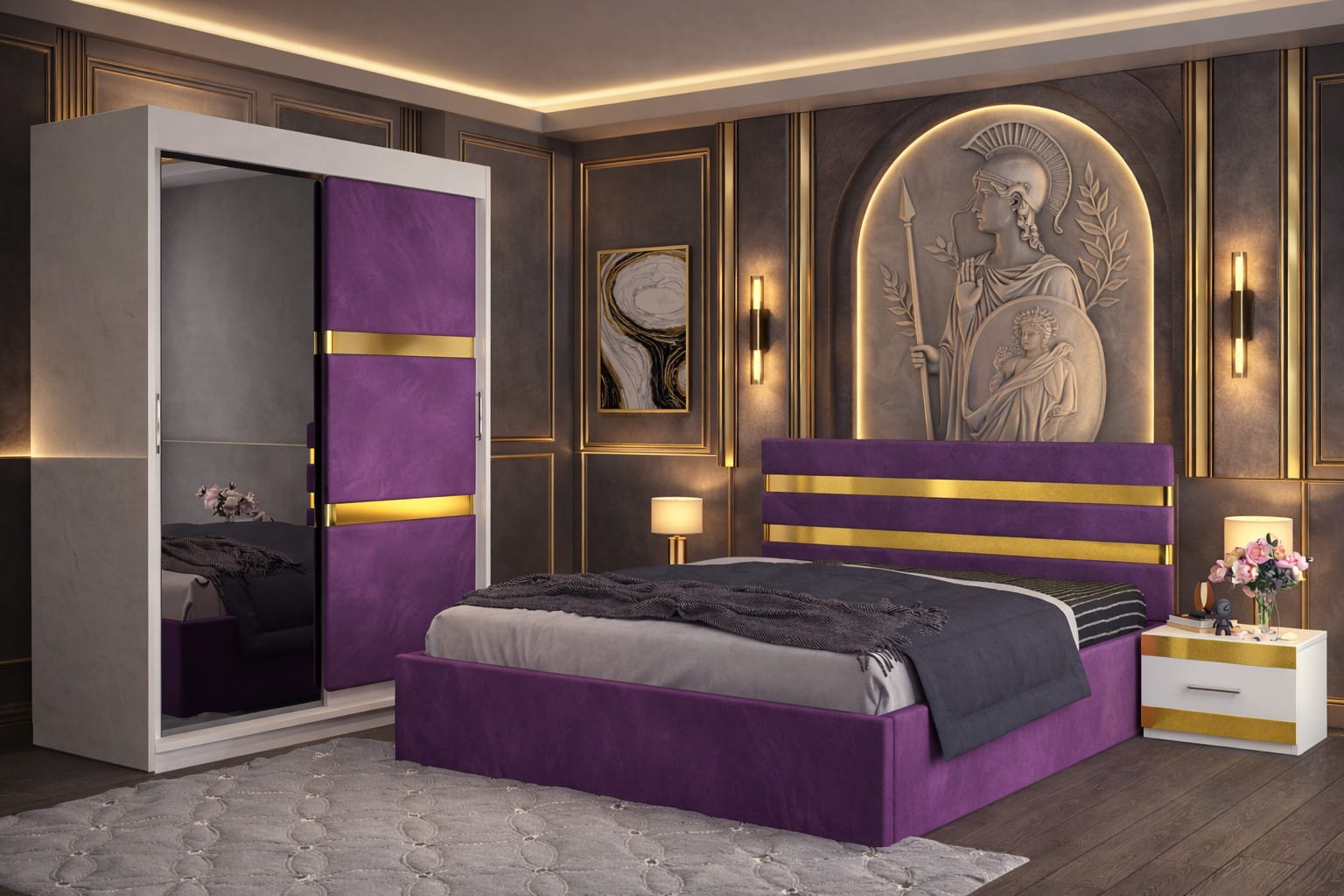 Dormitor ATENA Cu Dressing Tapitat
