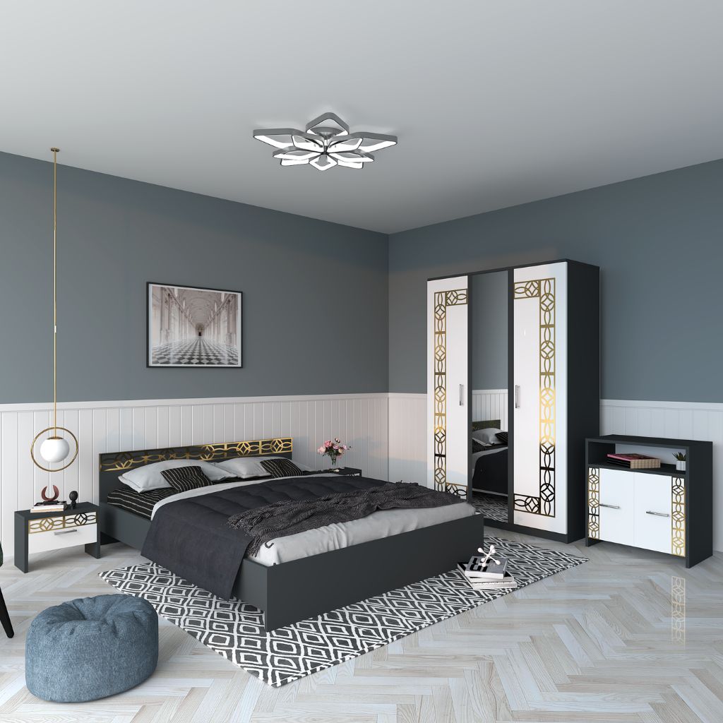 Dormitorul ANA este alegerea perfectă pentru un spațiu modern și rafinat, combinând designul elegant cu funcționalitatea practică. Setul complet oferă armonie vizuală și confort, fiind ideal pentru un dormitor contemporan.