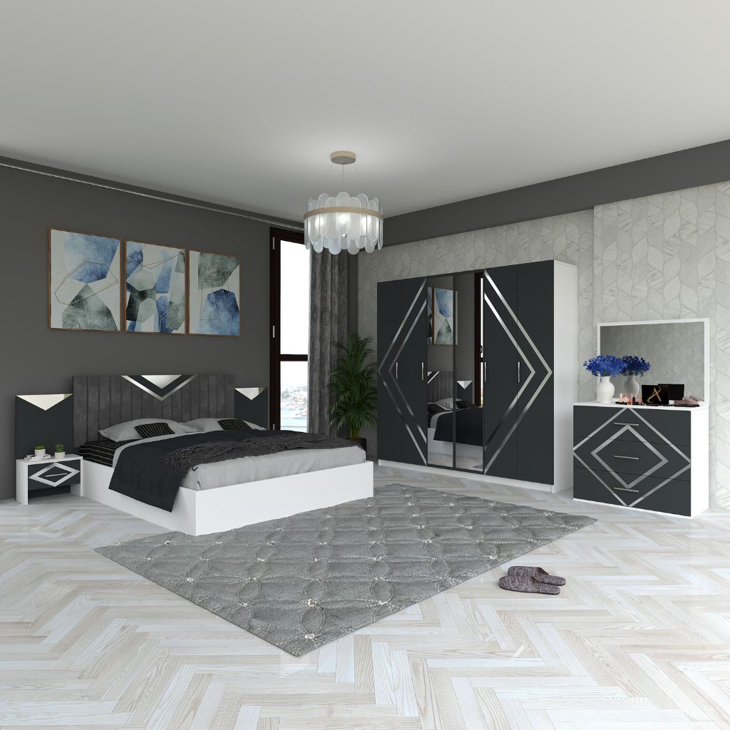 Dormitorul ANA este alegerea perfectă pentru un spațiu modern și rafinat, combinând designul elegant cu funcționalitatea practică. Setul complet oferă armonie vizuală și confort, fiind ideal pentru un dormitor contemporan.