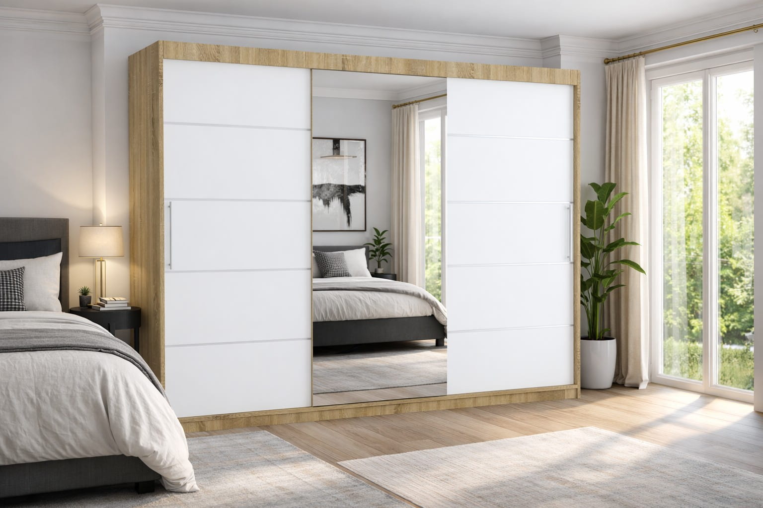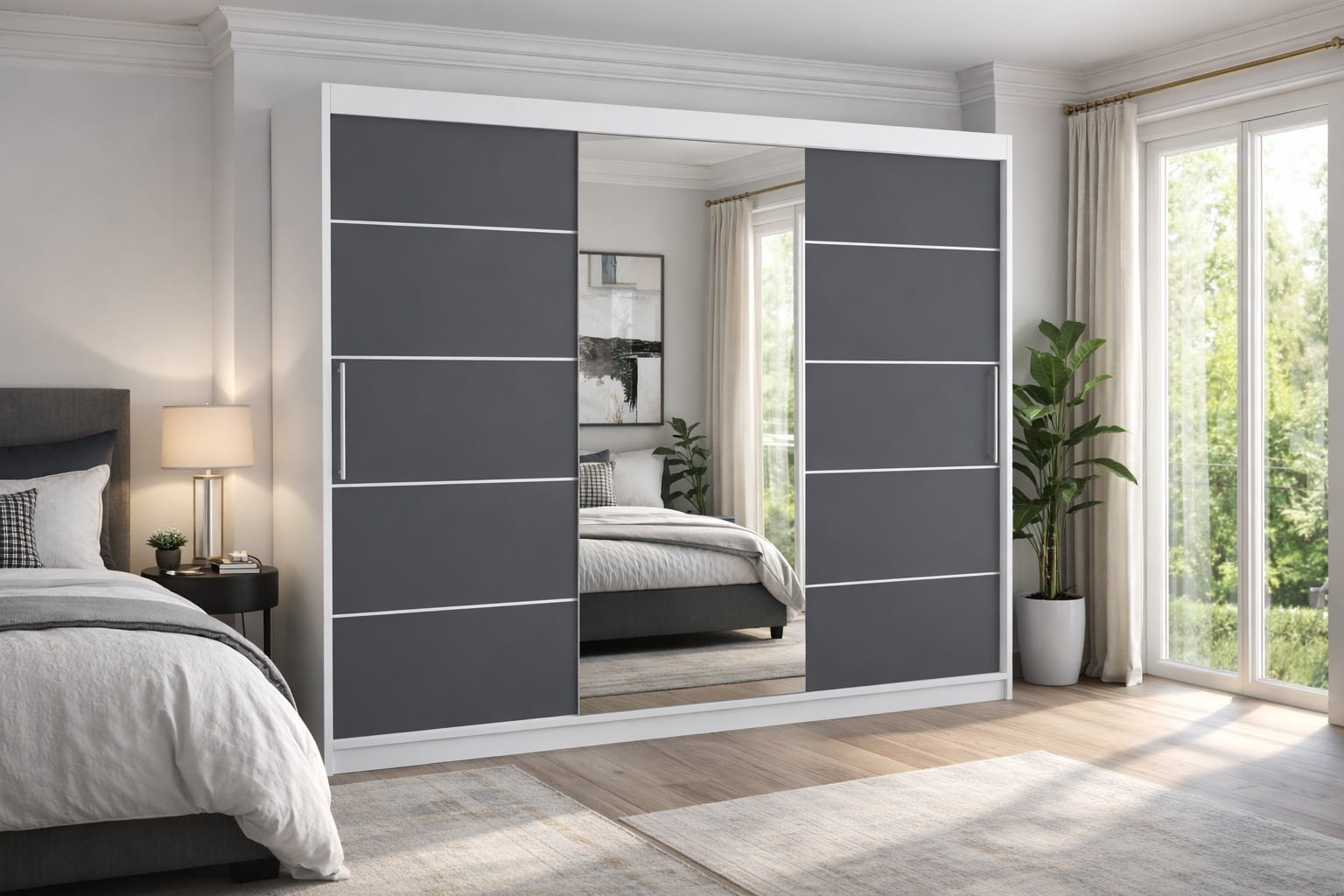 Dressingul SMART 250cm este alegerea ideală pentru un dormitor modern și elegant, oferind spațiu generos de depozitare, design premium și un aspect sofisticat care atrage imediat atenția.