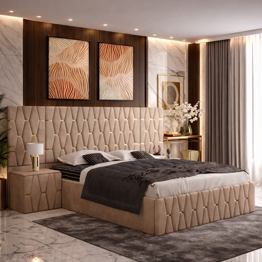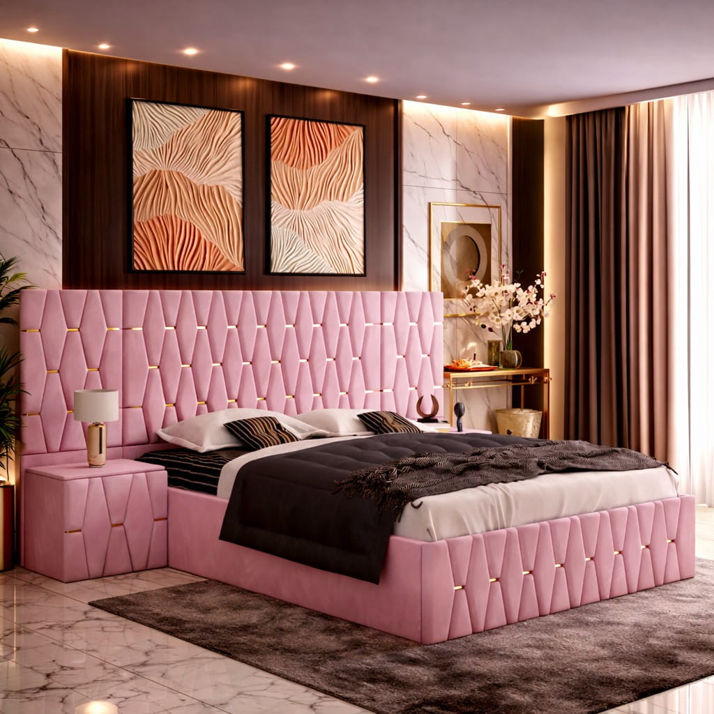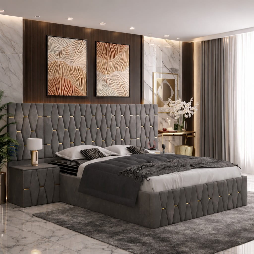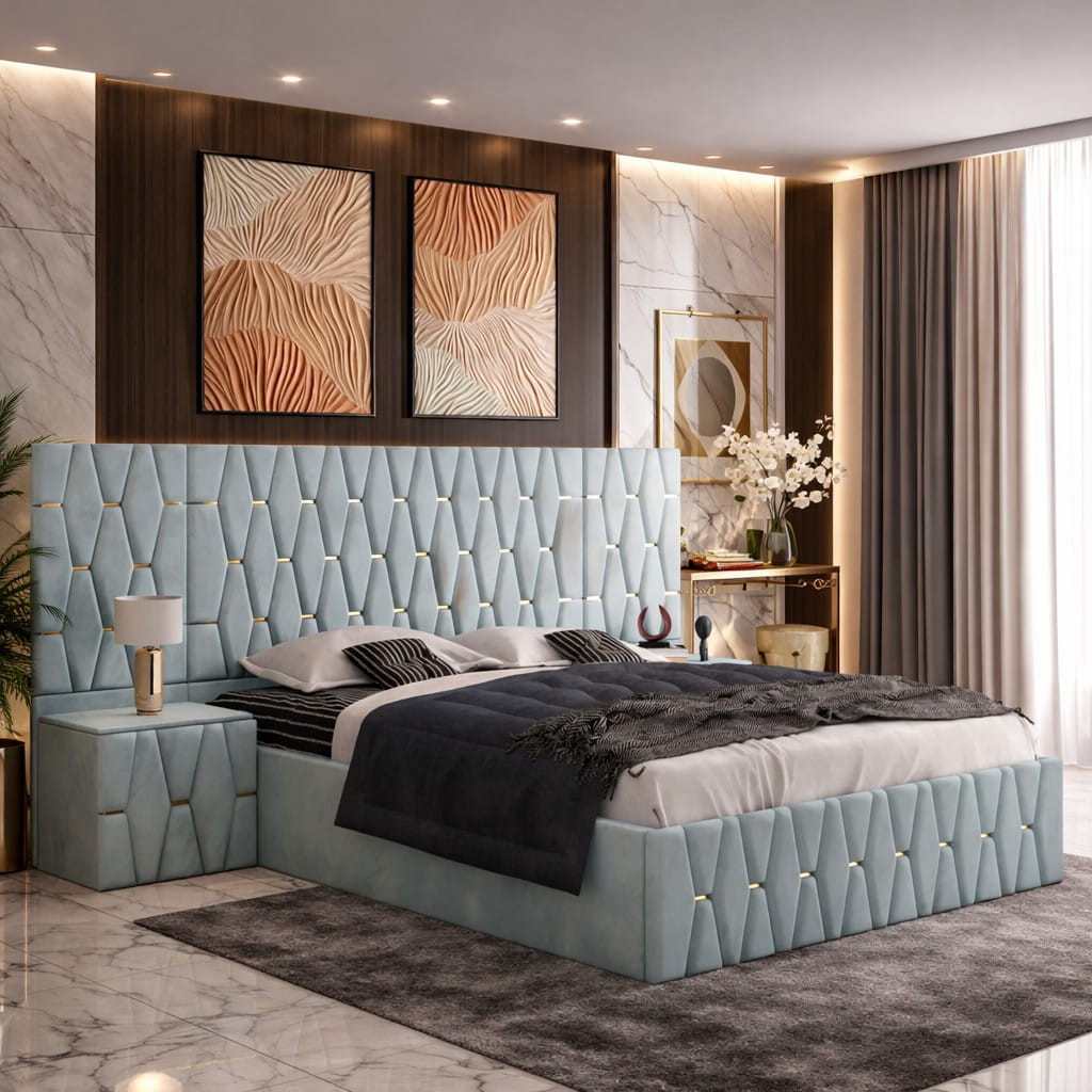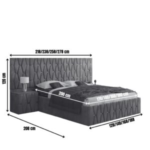 Pat Tapitat ANA Cu Extensii Si 2 Noptiere Tapitate