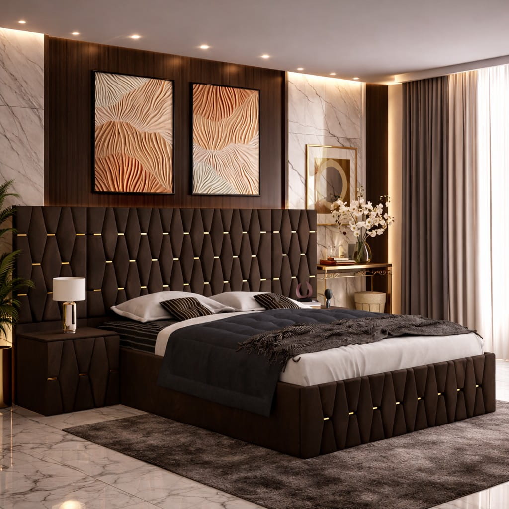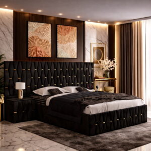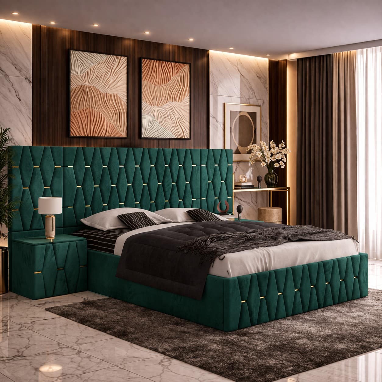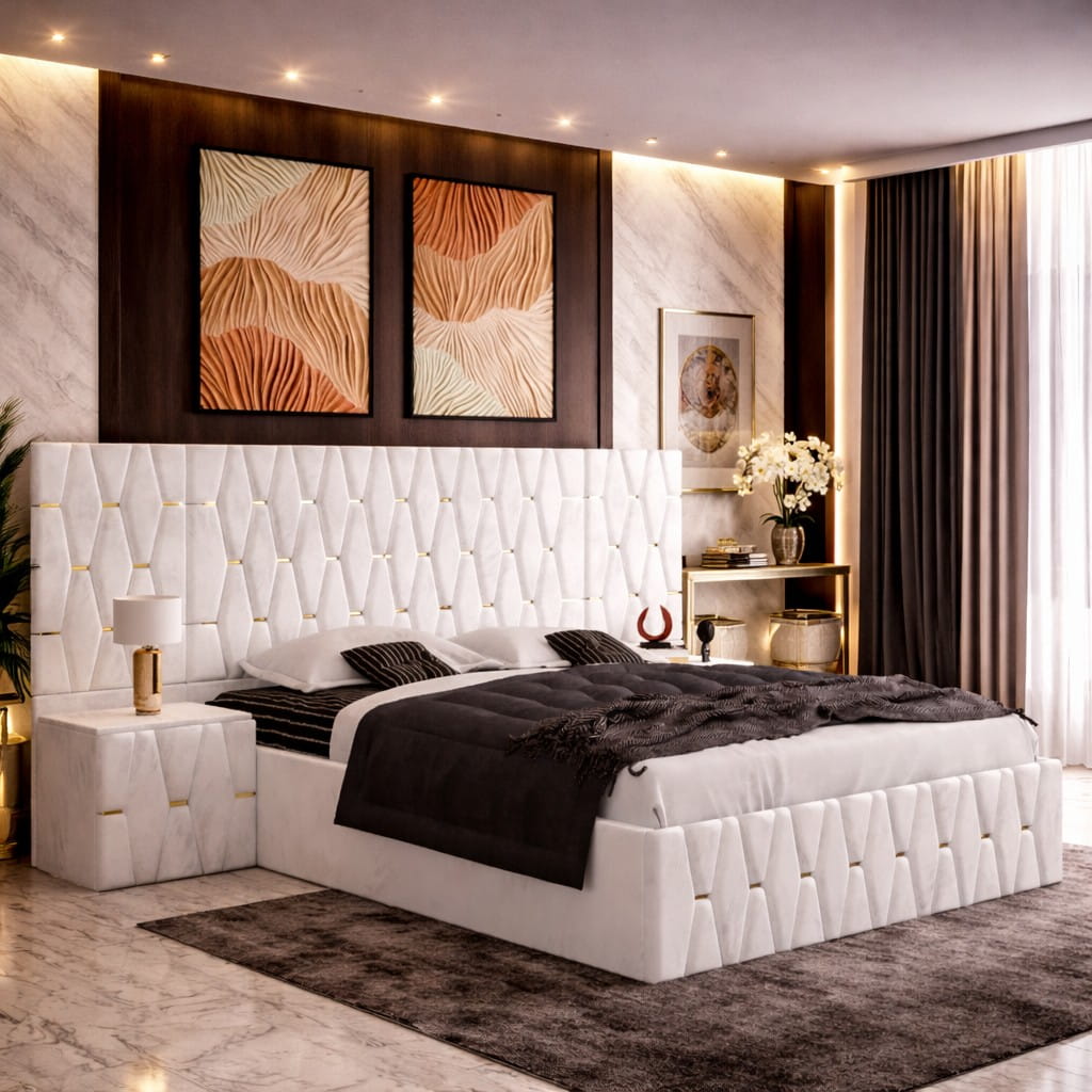 Pat Tapitat ANA Cu Extensii Si 2 Noptiere Tapitate